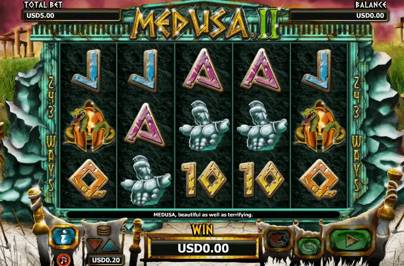 《美杜莎II》采用经典的五轴三排老虎机结构,搭配25条固定连线组合,不仅保留传统老虎机的操作习惯,同时结合神话剧情与图腾图标,为整个游戏注入独特生命力。